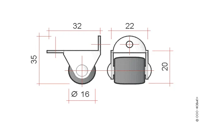 | Опора роликовая H35 | Фото Креслення | 9.00 |