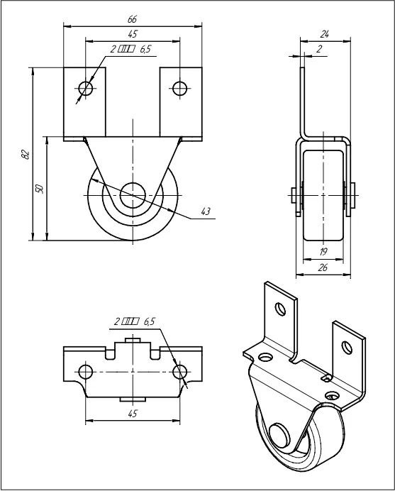 | Опора роликовая H42 | Фото Креслення | 9.00 |